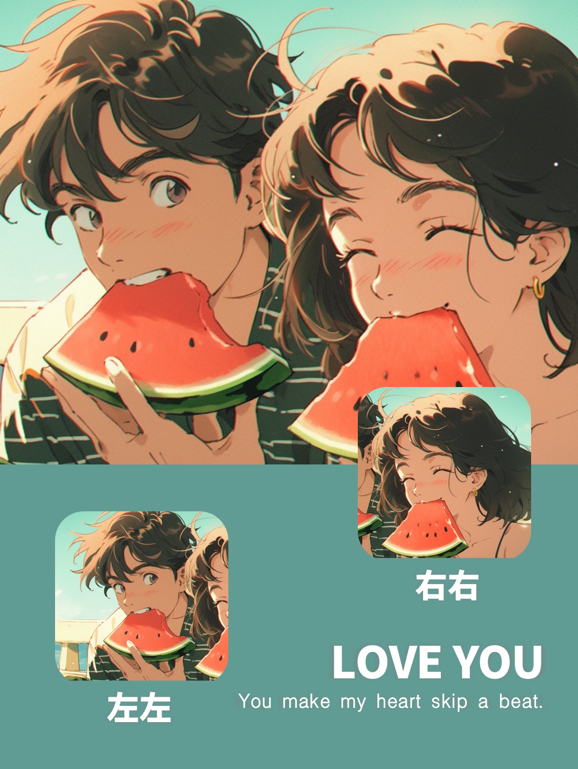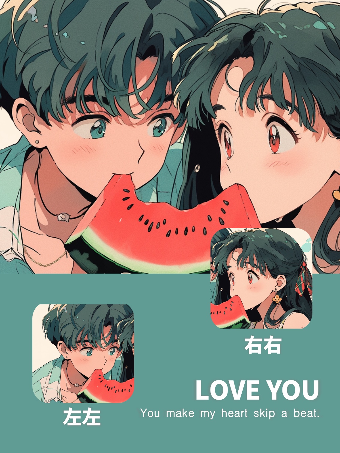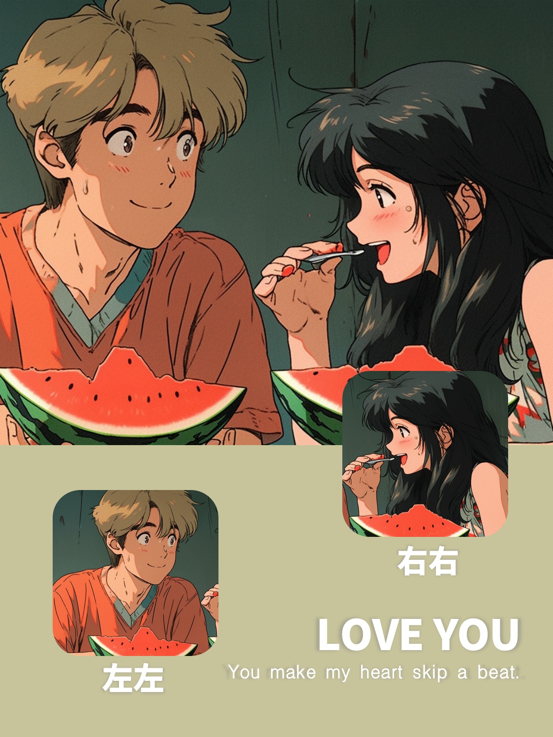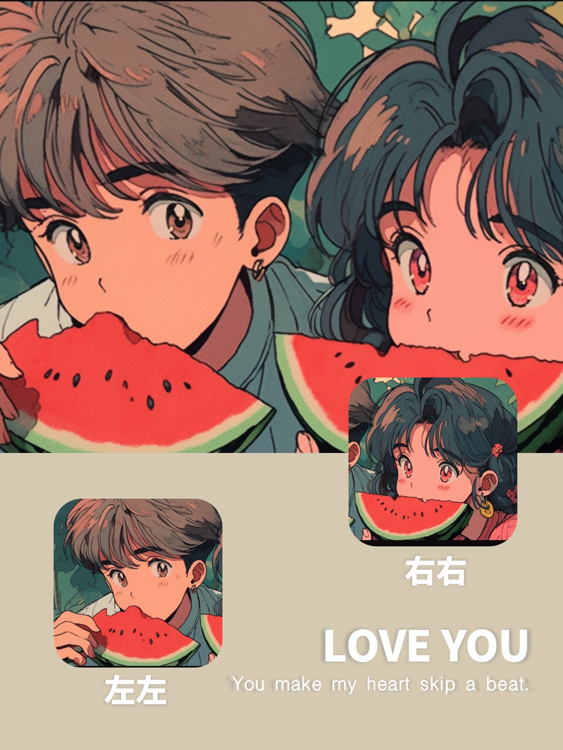 AI绘画|旧漫风超甜小情侣一起吃西瓜头像