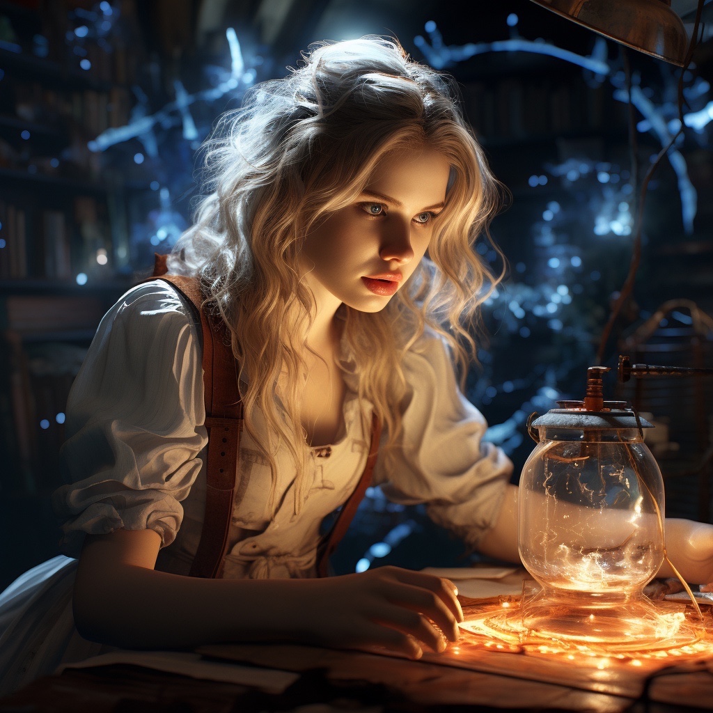 镜头聚焦在艾丽丝,她作为时间棱镜项目的核心研究员,正专注地观察着时间棱镜的运行。